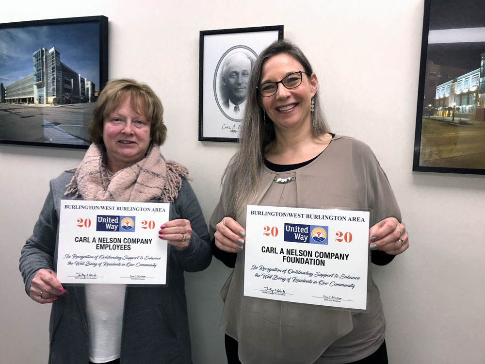 Once again in 2020, Carl A. Nelson & Company, through its employees and charitable foundation, will contribute to the local fundraising efforts of United Way in the Greater Burlington area in support of community organizations ranging from the Alcohol and Drug Dependency Services to Young House Family Services.