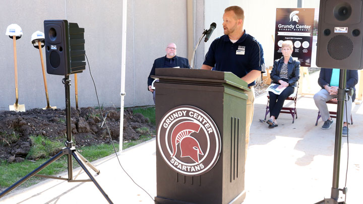 Speakers at the ceremony included Carl A. Nelson & Company (CANCO) Project Manager Nick Liston, a Grundy Center native and Grundy Center High School graduate. Liston, who works in CANCO’s Cedar Falls office, expressed the company’s pride in having the opportunity to serve the district in the role of construction manager on the project for pre-construction and construction.