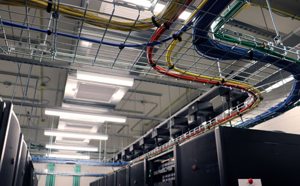 While the initial design called for a flush connection between the two buildings, CANCO advised that to avoid code, cost and maintenance implications, the two buildings should be connected by enclosed walkways. The single-story building was wired with miles of cable to connect critical communications equipment. A generator is able to sustain the building's electronic and communications systems without external power, and is equipped to ensure those systems remain online during a switch to generator power.